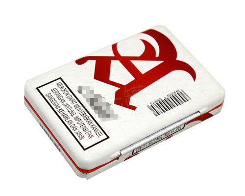 ,60*21*89規格的盒身緊緊相連,給消費者看起來像一個行李小盒一樣,精美別致。鉸位翻蓋設計,鐵罐印刷為單面專色印刷工藝,外層涂布致密的鐳射鍍膜,讓鐵盒外觀在不同角度呈現不同的視覺效果。這款香煙鐵盒能包裝20支各品牌的香煙產品,是鐵盒的包裝!