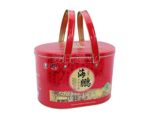 此款橢圓形中秋月餅鐵盒產(chǎn)品在印刷工藝方面,使用了四色與專色印刷工藝制作,內(nèi)外表面處理為過光油。鐵盒作有透鐵效果處理,使得鐵盒整體具有的金屬質(zhì)感。