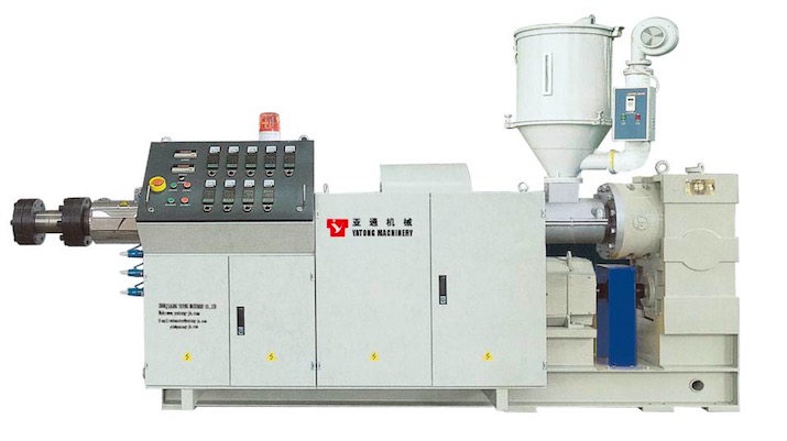 本機主要用于PP, PE, ABS等塑料的加工,配上各種輔機,可以直接生產異型材、管材、片材等塑料制品或造粒。本機設計先進,產量高,塑化好,能耗低,采用硬齒面傳動,噪音低,承載力大,運行平衡,壽命長。